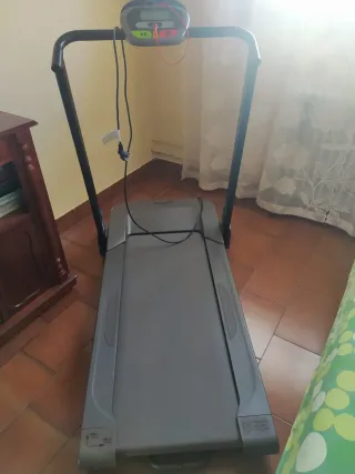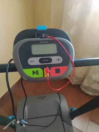 Cinta de andar Domyos W500 de Decathlon. - Diseño plegable para fácil almacenamiento. - Pantalla digital para seguimiento de actividad. - Superficie de carrera gris. - Estructura de metal negro. - Muy sencillo funcionamiento y botones grandes - Ideal para personas mayores