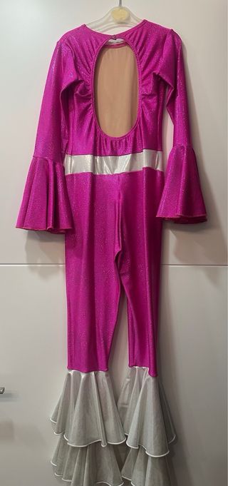 Mono de patinaje artístico de la marca Guillermo Bordoy, talla 2. Diseñado para ofrecer comodidad y libertad de movimiento en la pista. Incluye banda para el pelo y cubre patines a juego - Color fucsia brillante con detalles plateados. - Mangas acampanadas. - Volantes en los bajos de las piernas