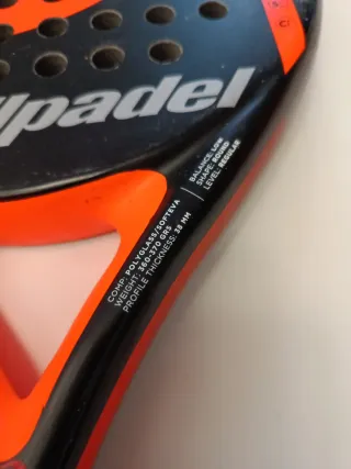 Pala de pádel Bullpadel Raider con un diseño llamativo en negro y naranja. Ideal para jugadores que buscan control y potencia en la pista. - Marco negro con detalles en naranja, con protector, sin golpes ni roturas. - Pala de control - Muy buena pala para empezar