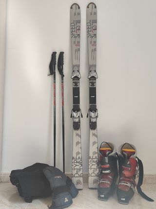 Se venden esquís Vista Speed Lock de 170cm, en buen estado. Incluyen fijaciones y bastones. También se incluyen botas de esquí, guantes y pantalones. El equipo está listo para usar. - Esquís Vista Speed Lock de 170cm. - Fijaciones incluidas. - Bastones de esquí. - Botas de esquí talla 45. - Pantalones de esquí talla L.