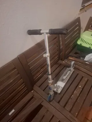 Patinete plegable de la marca Oxelo en color blanco. - Diseño moderno y funcional. - Ruedas de buen tamaño para un desplazamiento suave. - Manillar ajustable en altura. Precio negociable