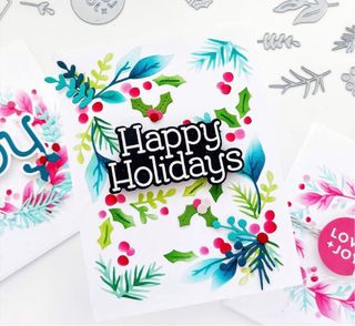 Conjunto de dos sets de stencils de tres capas y troqueles para crear coronas o marcos de navidad. - Cada set de stencils tiene 3 capas cada uno. - Ideal para manualidades y scrapbooking.