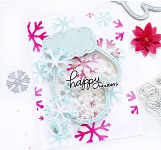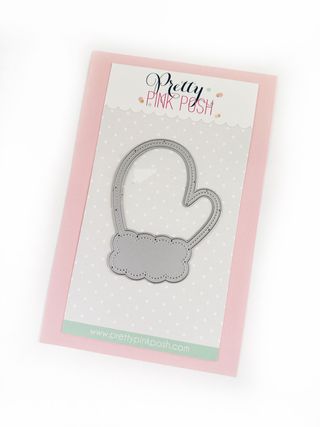 Troquel de la marca Pretty Pink Posh con forma de manopla para hacer tarjetas tipo shaker - Diseño con borde festoneado.