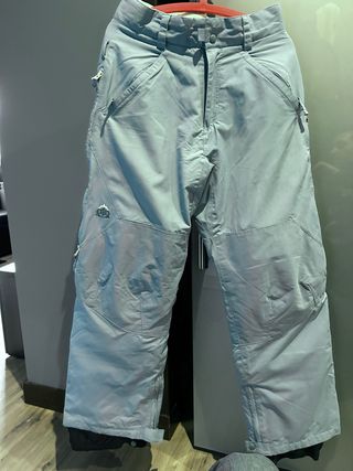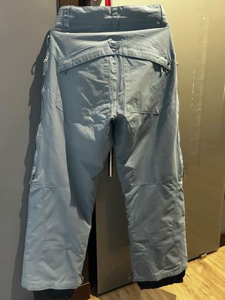 Pantalón de esquí o snowboard en color azul claro. Diseñado para la montaña. Medidas: 40cm de cintura y 100cm de largo - Cintura ajustable - Cierre de cremallera y botón. - Bolsillos laterales con cremallera. - Detalle de logo en la pierna izquierda.