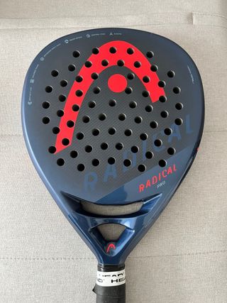 Pala de pádel Head Radical Pro modelo 2024. - Diseño en color azul marino y rojo. - Menos de 20 partidos Núcleo de Control Foam y planos de Carbon 3K. Con tecnología Auxetic, Smart Bridge y Optimized Sweet Spot.