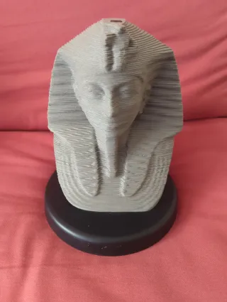 Pieza decorativa de un faraón en 3D, con un diseño escalonado. - Base negra. - Material: Cartón. Base plástico