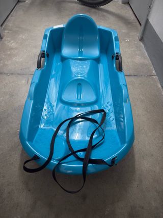 Trineo de nieve de Decathlon, de una plaza. ideal para deslizarse por la nieve. Con frenos en los laterales. La cuerda de arrastre se ha cambiado por una cuerda mas larga con empuñadora de madera mas comoda. >>Recogida en Avd Pirineos de Huesca >>Revisa mi perfil para otros articulos.