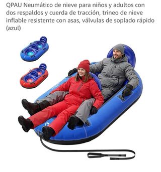PRODUCTO NUEVO A ESTRENAR EN SU CAJA ORIGINAL SIN ABRIR PERFECTO PARA REGALO. POSIBILIDAD DE ENVÍO GRATIS Trineo inflable de nieve QPAU para dos personas en color azul. Cuenta con cubierta de lona de alta calidad y un diseño resistente. - Respaldo integrado. - Asas reforzadas para un mejor agarre. - Apto para niños y adultos. #NUEVO100SNOW