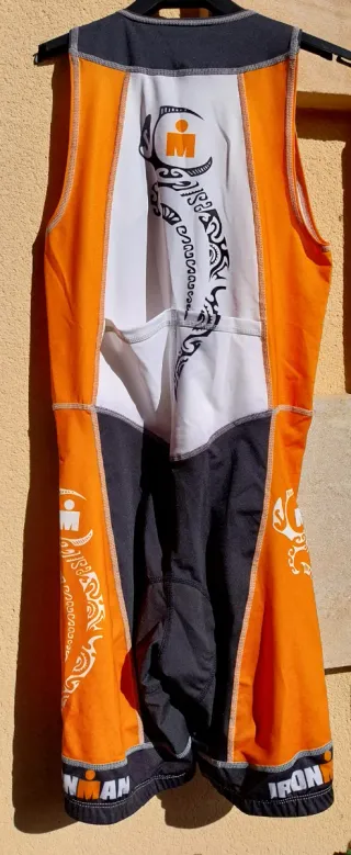 Tritraje de triatlón para mujer de la marca IRONMAN. Color naranja y blanco con detalles en negro. Con badana. A estrenar. Etiqueta incluida. De colección.
