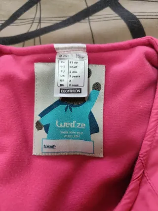 Pantalón de nieve rosa de la marca Wedze para niña. - Talla 2 años (83-90cm) - Diseño de peto. - Abertura lateral de cremallera. - Color rosa vibrante. - Ideal para actividades en la nieve.