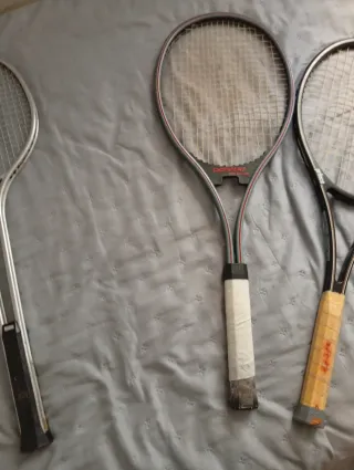 Se venden 3 raquetas deportivas. - Una raqueta de color plateado. - Otra raqueta con detalles en rojo y negro y una de color negro