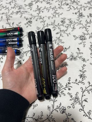 Pack de rotuladores permanentes Pilot en 4 colores diferentes. Ideales para marcar sobre diversas superficies. - Marca: Pilot - Tipo: Permanente - Cantidad: 8 unidades - Colores: Rojo, Verde, Azul, Negro