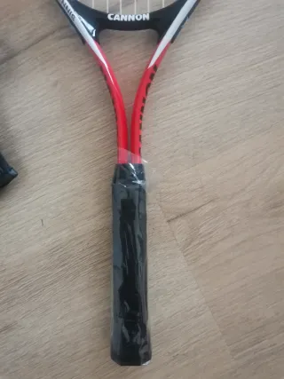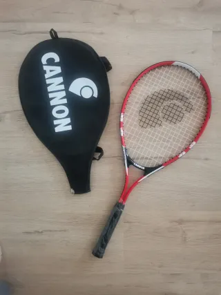 Raqueta de tenis Cannon de 25 pulgadas, completamente nueva. - Incluye funda protectora. - Diseño moderno en color rojo y negro.