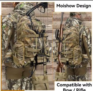 Mochila de camuflaje con diseño táctico, ideal para actividades al aire libre. - Estampado de camuflaje realista. - Múltiples correas y hebillas de ajuste. - Bolsillos laterales de malla. - Compartimento extraíble en la parte inferior.
