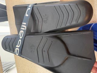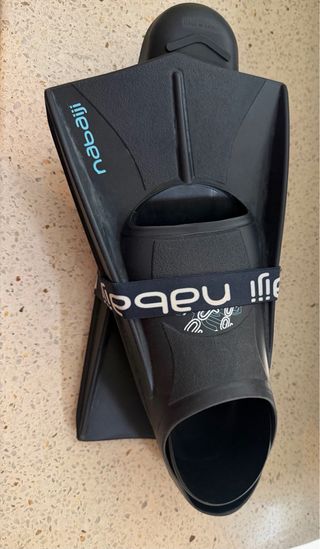 Aletas de natación de la marca Nabaiji, diseñadas para mejorar el rendimiento en el agua. Son cómodas y fáciles de usar. - Color negro. - Correa ajustable para un mejor ajuste. - Material de goma flexible.