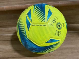 Balón de fútbol oficial de La Liga para la temporada 2022-2023, fabricado por Puma. - Diseño vibrante con patrones geométricos. - Logotipo de La Liga. - Marca Puma. - Balon oficial de juego