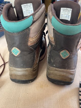Botas de montaña Columbia en color marrón y detalles en turquesa. Perfectas para senderismo. - Modelo: Caska Pass Omni-Tech - Talla EUR: 36.5 - Fabricadas en China