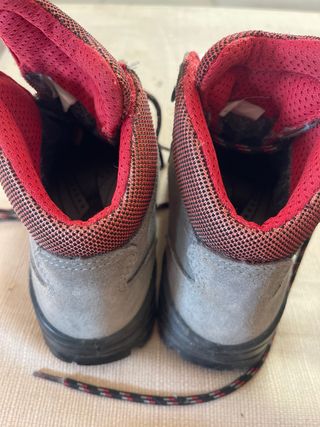 Botas de montaña Chriruca Hiking en talla 35. Perfectas para senderismo y actividades al aire libre. - Color gris con detalles en rojo. - Cierre con cordones. - Suela de goma.