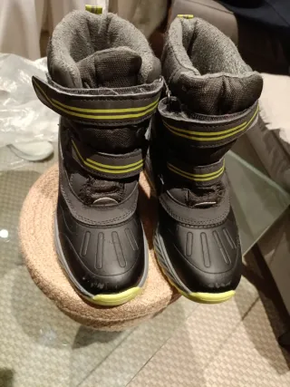 Botas de nieve para niños en talla 33. Perfectas para mantener los pies calientes y secos en el frío. - Diseño en color negro con detalles en amarillo. - Cierre de velcro para un ajuste fácil. - Interior forrado para mayor comodidad.
