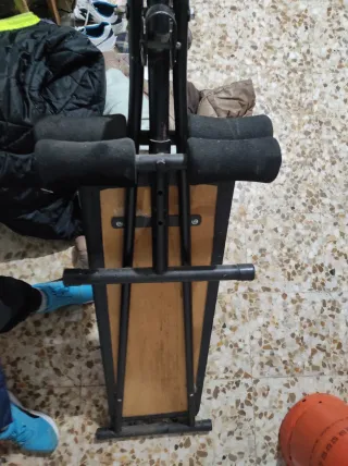 Banco para ejercicios abdominales de la marca Domyos, modelo PA250. Diseñado para facilitar tu rutina de entrenamiento en casa. - Tapizado en color gris. - Estructura metálica. - Ruedas de espuma para soporte. 12 euros Tambien Bicicleta estática Cyclostatic en buen estado. Ideal para hacer ejercicio en casa. Tiene un defecto en el sillin que se ve en una foto , es superficial y no afecta a su uso, entrego en mano - Marca: Cyclostatic - Color: Blanco 35 euros Tambien Stepper compacto para ejercitar las piernas en casa. Su diseño es moderno y funcional. 11 euros