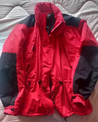 Chaqueta Trangoworld de dos tonos, ideal para actividades al aire libre. - Color rojo y negro. - Diseño con capucha. - Cintura ajustable con cordón.