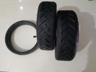 Dos neumáticos y dos cámaras de aire para patinete Xiaomi. 8.5 pulgadas. Totalmente nuevos a estrenar. Recambios originales que venían con el patinete. - Neumáticos con dibujo. - Cámara de aire con válvula. Ruedas patinete Xiaomi. Precio no negociable. Las dos 25€, por separado 15€ cada una.