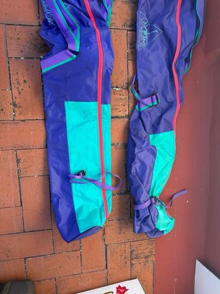 Se venden dos fundas para esquís, completamente nuevas. - Diseño en color morado, turquesa y detalles en rosa. - Cierre con cremallera. - Correas de sujeción.