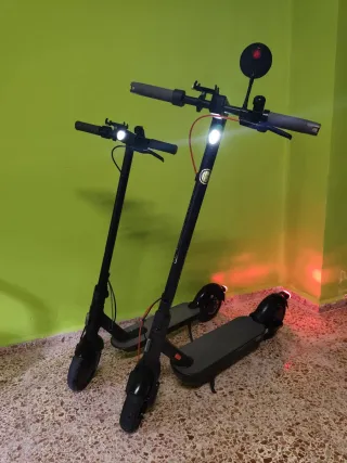 Se venden dos patinetes eléctricos Xiaomi en excelente estado, como si fueran nuevos. - Diseño plegable para fácil transporte. - Luces LED delanteras y traseras. - Frenos de disco.