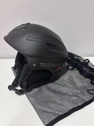 Casco de nieve marca Tijuana en color negro. Ideal para deportes de invierno. - Diseño moderno, seguro - Acolchado interior para mayor comodidad y transpirable - Correa ajustable cervical para un ajuste perfecto - Incluye bolsa de malla para transporte.
