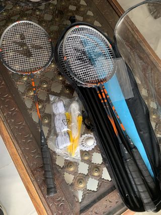 Set de bádminton para iniciarse en el deporte. Incluye todo lo necesario para empezar a jugar. - 4 Raquetas de bádminton. - Volantes para jugar. - Funda de transporte.