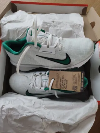 Zapatillas de golf TALLA 42 Nike Air Zoom Infinity Tour Next 2 con un diseño moderno y deportivo. Combinan blanco y verde para un look llamativo en el campo. TIENEN UN SOLO DIA DE USO, LAS VENDO PORQUE TENGO OTRA TALLA. - Parte superior de malla transpirable. - Suela con tacos para un agarre óptimo. - Detalle del logo Swoosh en verde.