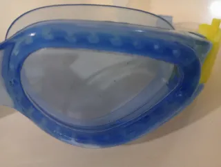 Gafas de natación con lentes azules y montura transparente. - Diseño ergonómico. - Correa ajustable.