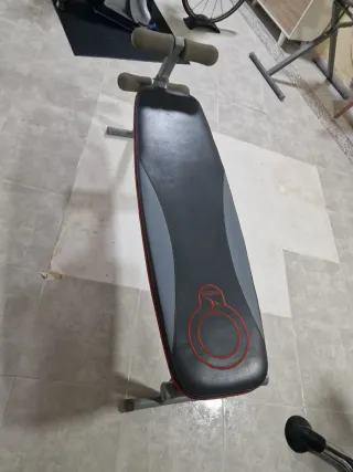 Varias posiciones. Banco diseñado para ejercicios abdominales. Presenta un acolchado en gris y detalles en rojo. - Acolchado principal en gris. - Ribete y detalles en rojo. - Estructura metálica.