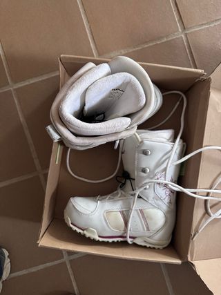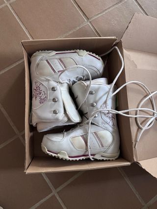 Botas de snowboard marca Tijuana en color blanco con detalles en burdeos. - Diseño con cordones. - Detalle floral en el lateral. -Talla 40