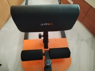 Banco para ejercicios lumbares de la marca Domyos. Su diseño permite trabajar la zona abdominal y lumbar. - Estructura metálica. - Asiento acolchado. - Empuñaduras de goma.