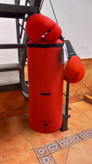 Se vende saco de boxeo de la marca Outshock, color rojo, con un par de guantes. - Saco de boxeo de color rojo. - Incluye un par de guantes de boxeo. - Marca: Outshock.