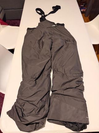 Pantalón de nieve de color gris oscuro con tirantes ajustables. Ideal para actividades al aire libre en climas fríos. - Tirantes negros (se pueden desmontar). - Tejido resistente. - Diseño con ajuste en la parte inferior de las piernas.