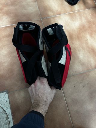 Espinilleras de hockey Bauer Supreme. - Color negro con detalles en naranja. - Cierre con correas. - Diseño anatómico. - Talla 17