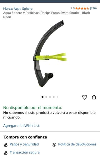 Tubo de natación Snorkel Focus de la marca Aqua Sphere, modelo diseñado por Michael Phelps. Usado un par de entrenamientos. Está nuevo. • Tubo hidrodinámico: reduce la resistencia y facilita la respiración • Soporte de cabeza ajustable y ligero: mayor estabilidad y ajuste cómodo. • Válvula de purga de una vía: maximiza la eliminación del exceso de agua • Perfil bajo y forma triangular: eliminación rápida del agua • Cojín integrado en el soporte de la cabeza: máxima comodidad • Pieza de silicona para el paladar inspirada en el buceo: mayor estabilidad y comodidad • Pieza bucal de silicona suave: minimiza la fatiga de la mandíbula