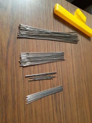 Conjunto de agujas para labores de punto y ganchillo. Incluye diferentes tamaños para diversos proyectos. - Agujas de punto metálicas. - Ganchillos metálicos de diferentes grosores. - Incluye un accesorio amarillo para organizar o sujetar.