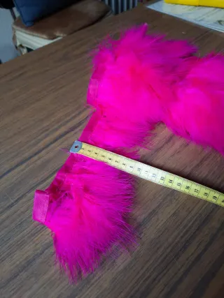 Fleco decorativo con plumas de color fucsia intenso. Ideal para manualidades o disfraces. Hay 5 m - Adorno de cinta de raso. - Plumas suaves y abundantes.