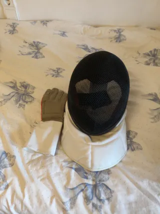Máscara y guante de esgrima