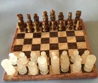 Tablero y piezas de ajedrez de mármol