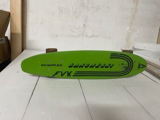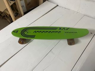 Monopatín vintage Sancheski de los años 80, fabricado en fibra. - Diseño clásico y llamativo. - Ruedas de color marrón. - Marca FVK Stratiflex.