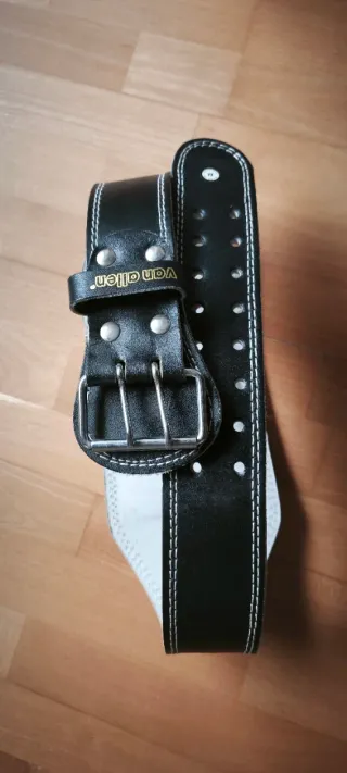 Cinturón de halterofilia de la marca Van Allen. - Talla M. - Color negro con costuras blancas. - En perfecto estado, sin apenas uso.