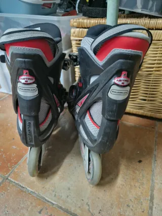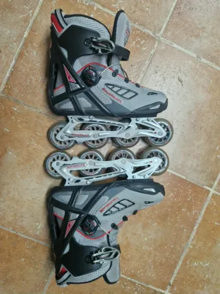 Se venden patines en línea de la marca Rollerblade, talla 42.5. Perfectos para disfrutar del patinaje. TIENE LAS GOMAS DE LOS CIERRES PARA CAMBIAR ( DE AHI SU PRECIO) - Diseño moderno en gris, negro y rojo. - Cierre de hebilla y velcro para un ajuste seguro. - Ruedas de alta calidad para un deslizamiento suave.
