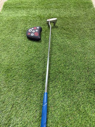 Putter de golf Taylor Made. - Incluye funda protectora con diseño de círculos. - Mango de color azul.