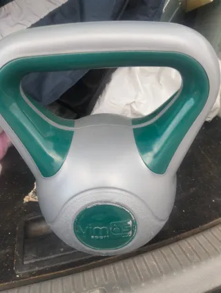 Kettlebell de 10kg de la marca Vimas Sport. - Color plateado y verde. - Diseño ergonómico.