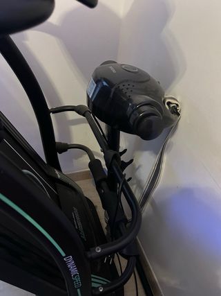 PARA RECOGER EN VERA Bicicleta de entrenamiento profesional dinámico con sistema de amortiguación para entrenamiento avanzado. - Pedaleo silencioso: Sistema silence fit. - Volante de inercia de 25 kg. - Manillar ergonómico de triatlon ajustable. - Sillín ajustable en altura y profundidad. - Pedales con correas. - Pantalla digital. - Incorpora barras estabilizadoras con ventosas para asegurar la macima fijac al suelo y ruedas para facilitar el transporte.
