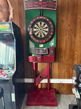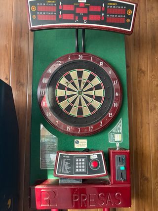 Diana profesional de la marca Presas. - Tablero de dardos. - Pantalla digital para puntuación. - Pie metálico ORIGINAL PRESAS - Pulsador para partidas gratuitas Totalmente operativa, incluido sensor dardos fuera.